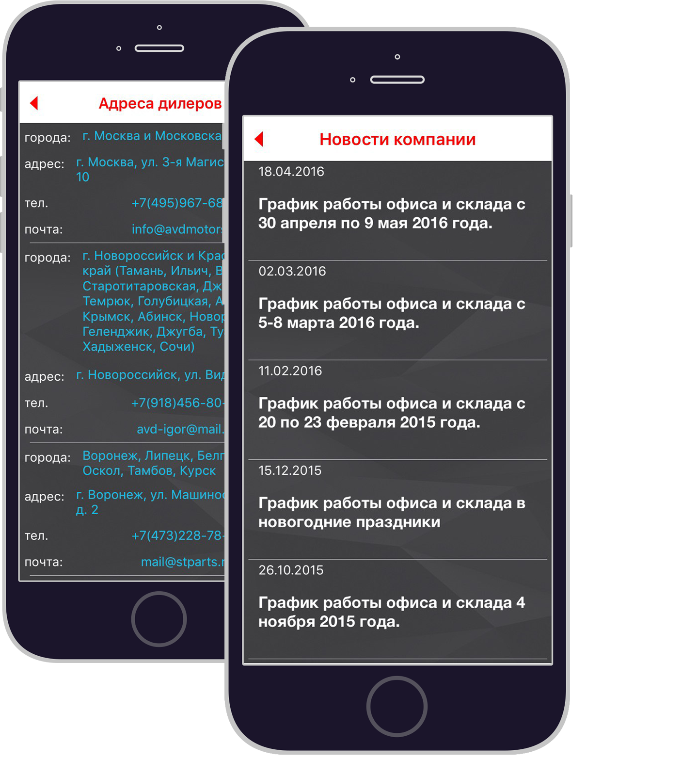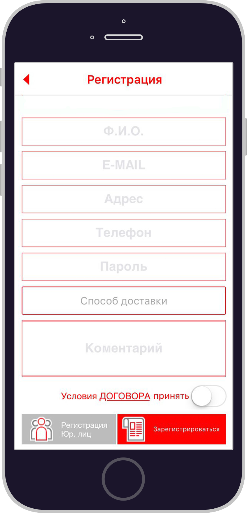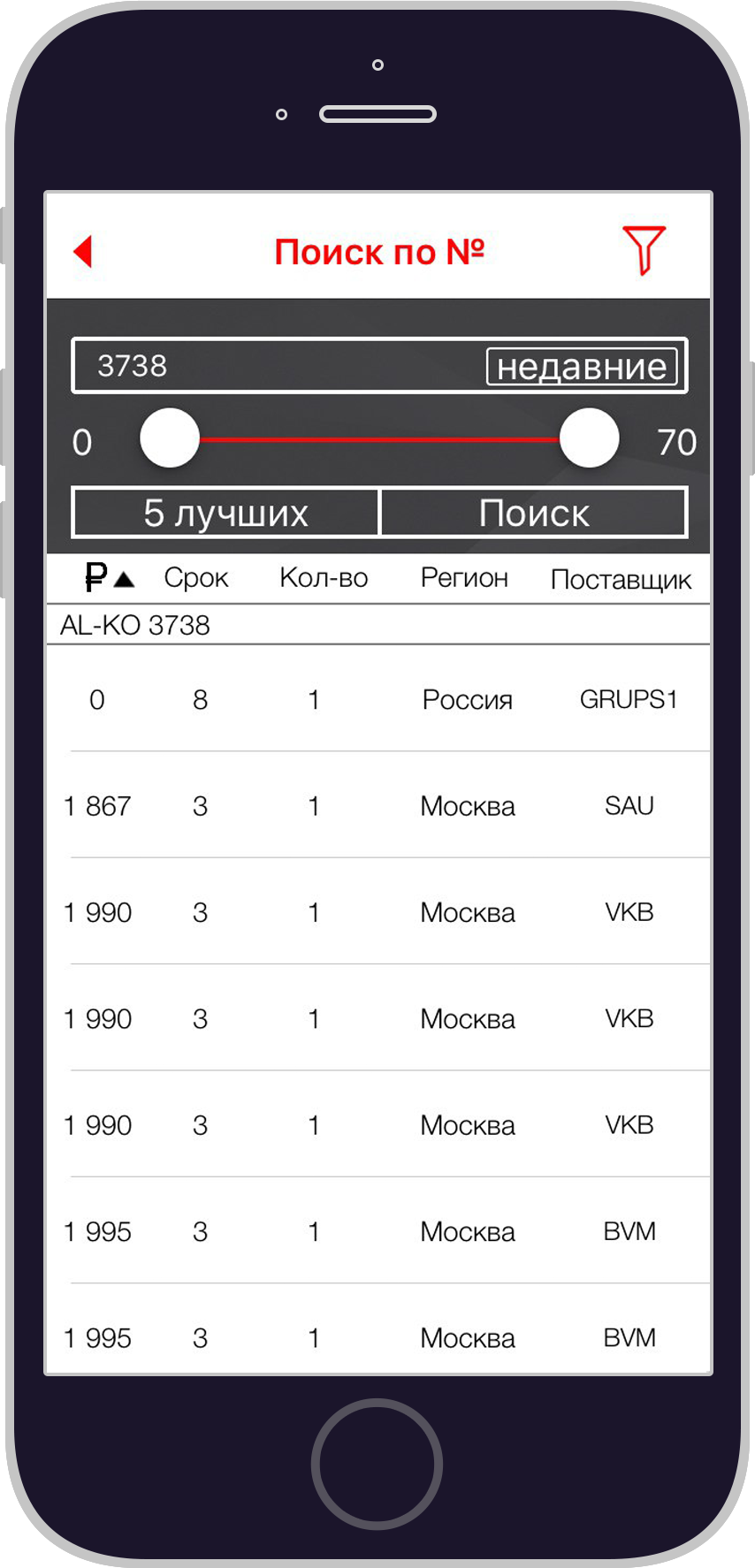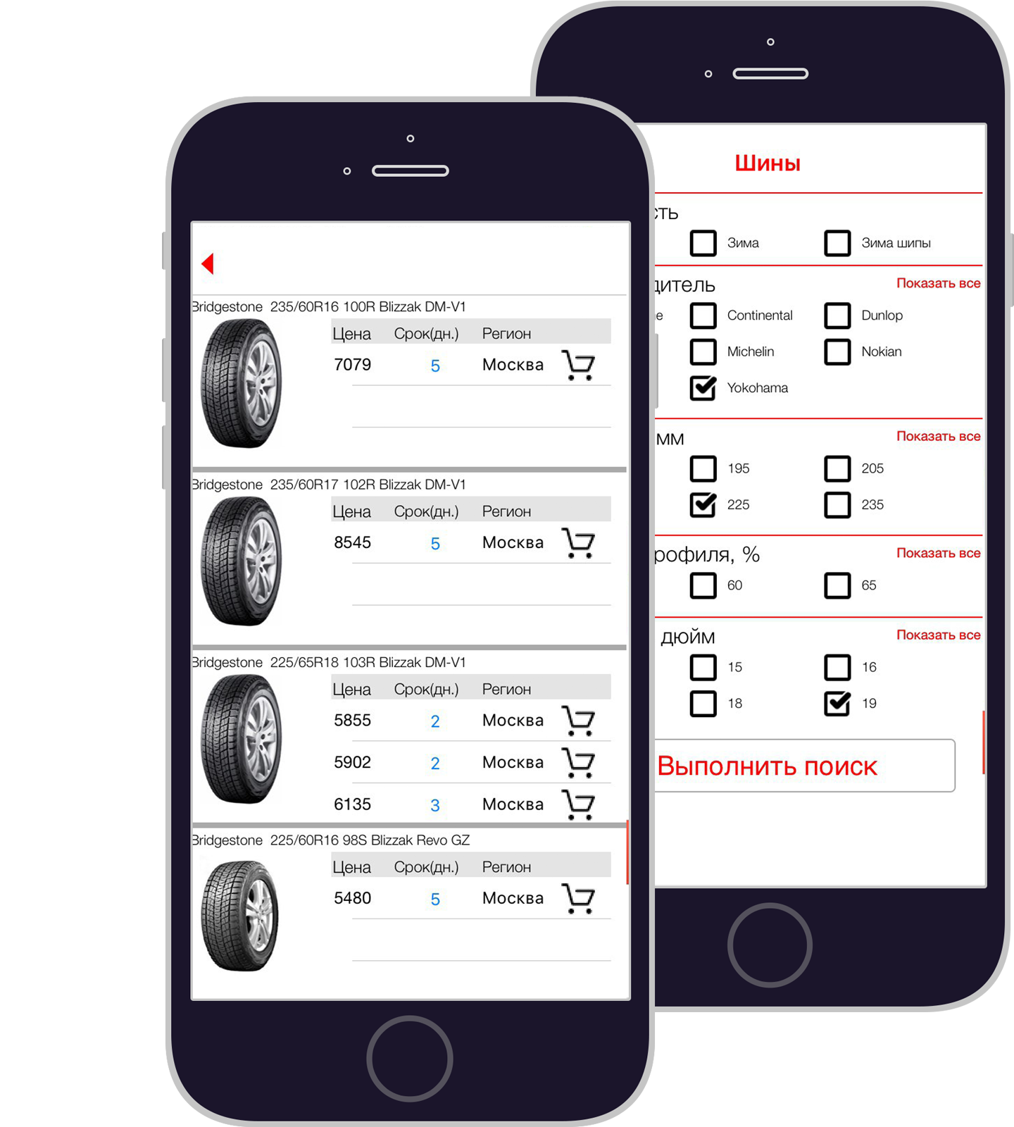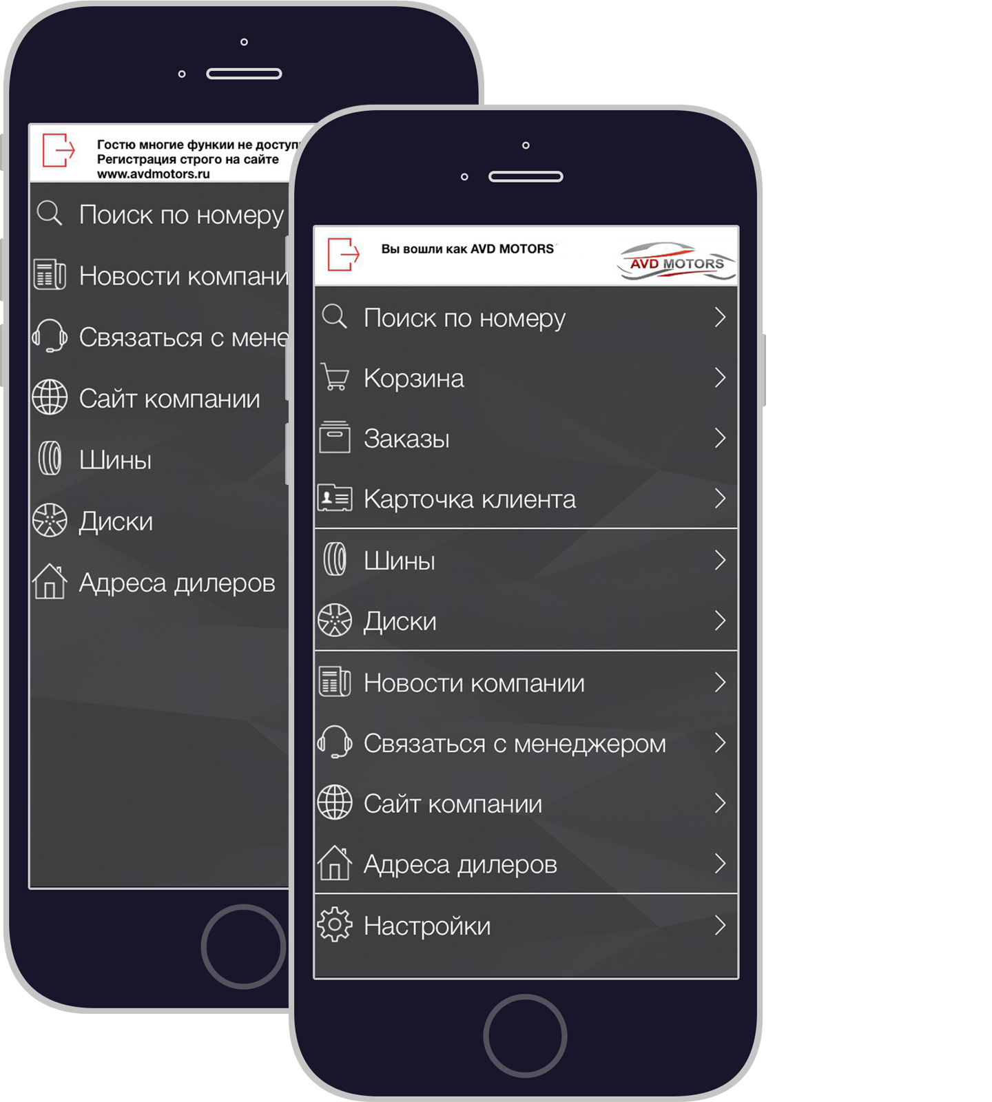 При первом скачивании пользователю приложения даётся возможность, ознакомиться со списком автомобильных запчастей, шин и дисков, находящихся в наличии, без предварительной регистрации. Но если появляется желание заказать, тут не обойтись без регистрации